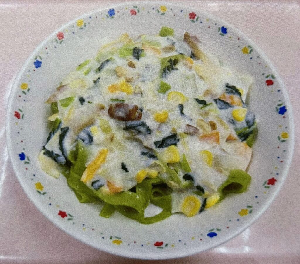西新井教会保育園 様 https://www.ans.co.jp/n/nishiaraichurch あだち菜パスタ ホワイトクリームソースにベーコン・小松菜・玉葱・人参・マッシュルーム・コーンが入ったソースをかけて提供 感想 小さい子どもだと麺がつかみやすくて良く食べます あだち... -